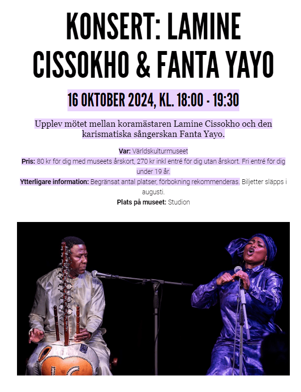 16TH OCT – Världskulturmuseum Göteborg, Sweden